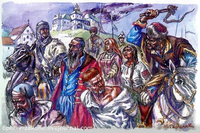 Б) «Українські землі були одним з основних обєктів татарських набігів… Татарська агресія принесла величезні руйнації,пожежі, пограбування, захоплення місцевого населення і прдаж його в рабство…»